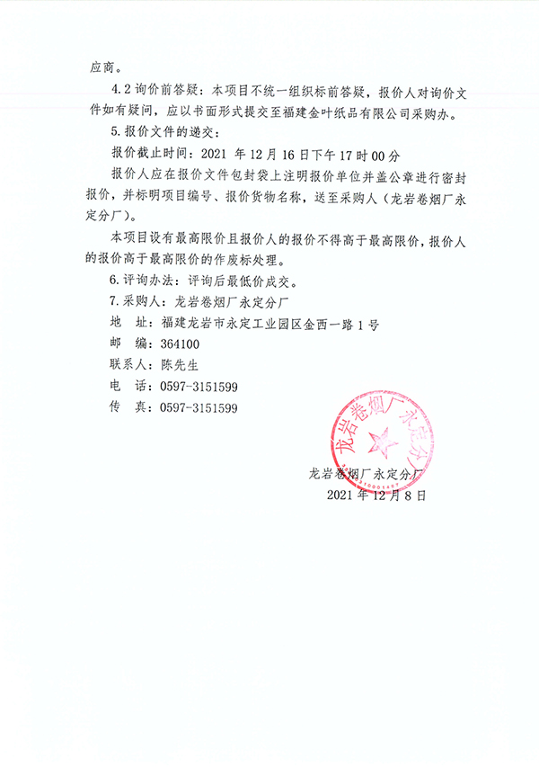 龍巖卷煙廠永定分廠簡(jiǎn)易鋼架結(jié)構(gòu)倉(cāng)庫(kù)搭建項(xiàng)目詢價(jià)公告